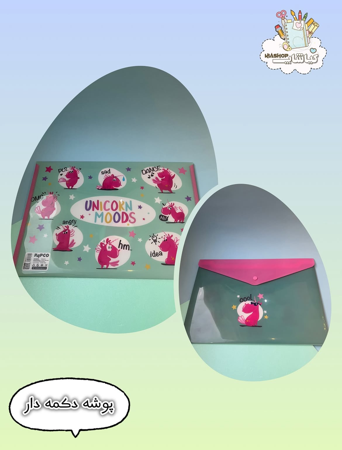 یکی از محصولات خاص و متفاوت پاپکو که برای حمل و نگهداری اسناد و مدارک و به طور کلی برگه هایی با سایز A۴ این محصول به دلیل طرح های متفاوتش بیشتر مورد استقبال همه ی سنین هست این فولدر از جنس پلاستیک و بسیار مرغوب و باکیفیته و در طرح های متنوعی تولید شده