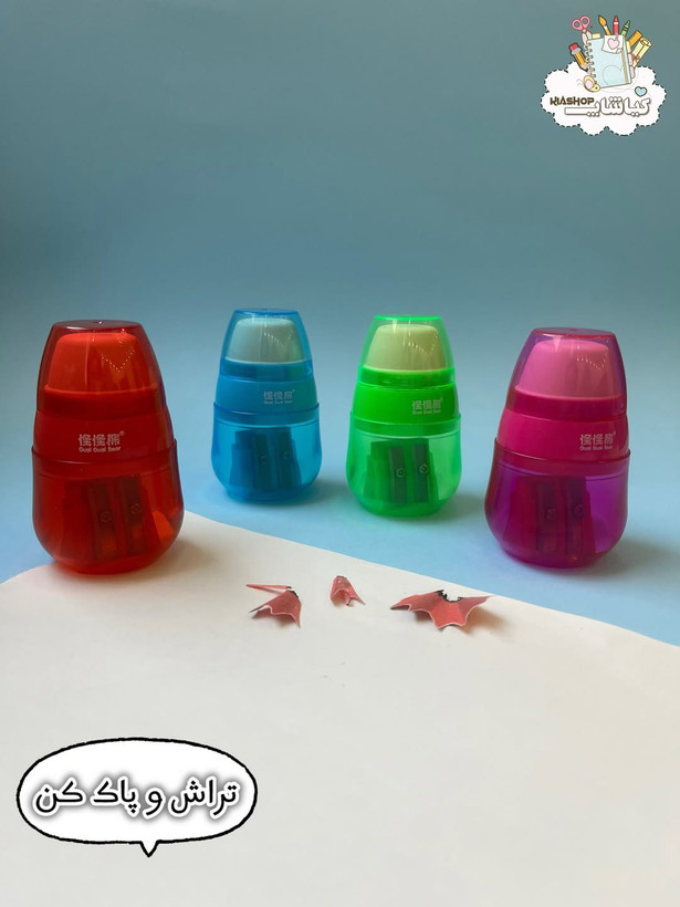 این تراش پاک کن مخزن دار یک محصول پر کاربرد و بسیار باکیفیته که یک سر تراش دو تیغه و یک سر هم پاک کن داره و البته هر دو هم مخزن دارهستن.