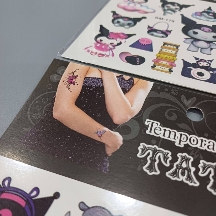 این تتوها دارای رنگ های غالب مشکی، بنفش و صورتی هستند و با شخصیت هایی شبیه “Kuromi” دنیای انیمه و کارتونی، حس خاص و منحصر به فردی را منتقل می کنند.