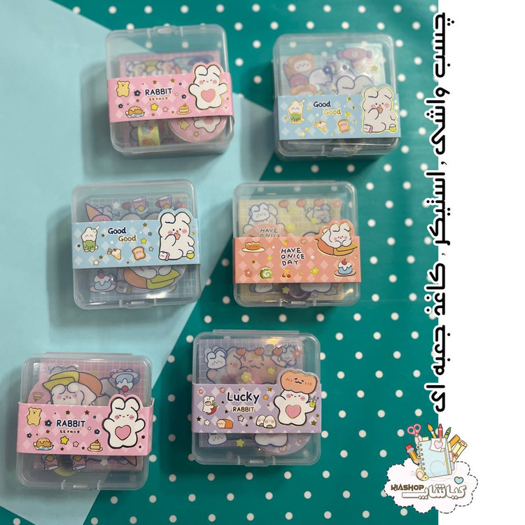 پک استیکر،چسب واشی و کاغذ یادداشت دارای جعبه ای🥰